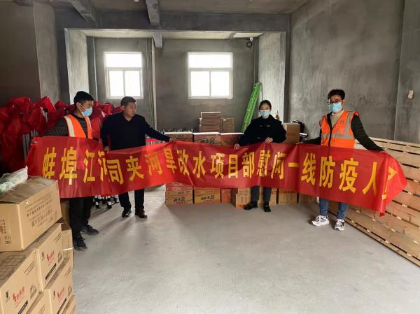 4月(yue)11日(ri)固鎮(zhèn)澥河隄防項(xiang)目(mu)部(bu)慰(wei)問一(yi)線防疫人員(yuan)